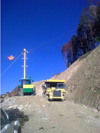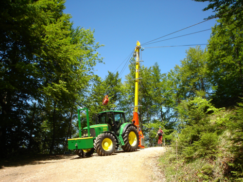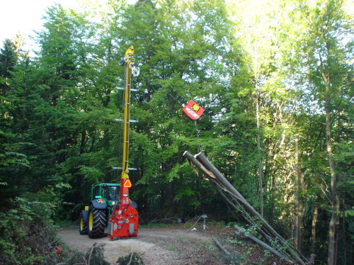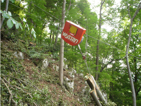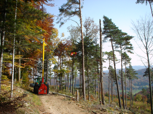 Seilbahn für den Holztransport in sehr steilem Gelände. Eignet sich zum Rücken von